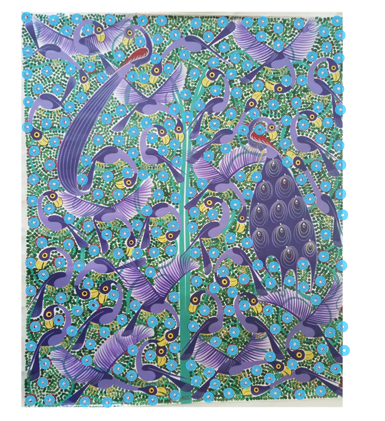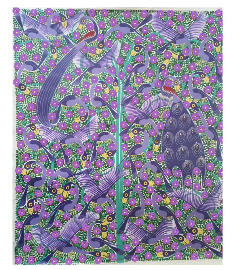 I loved seeing this style of painting. The painters could draw the same animal or pattern over and over again, and the whole would be more than the sum of its parts. Let’s dive into one specific painting and find principles of computation and geometry hidden within.